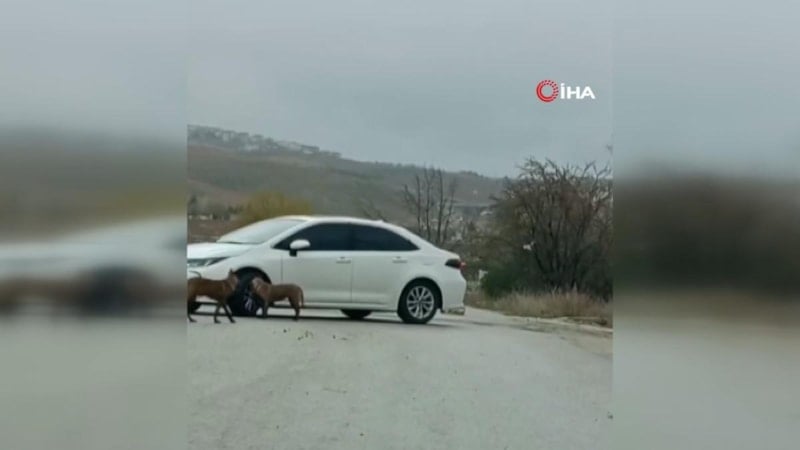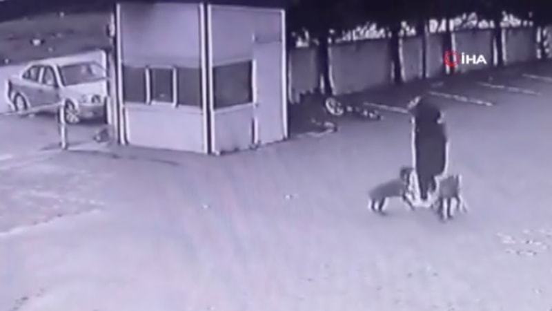 Öte yandan, köpeklerin kadına saldırdığı anlar güvenlik kamerasına yansıdı.
