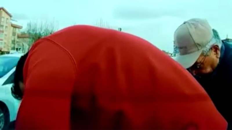 Kazada kimse yaralanmazken Ali U., aracından inerek arkadan çarpan otomobil şoförünün kapısını açarak yaşça kendinden büyük olan şoförün elini öptü.