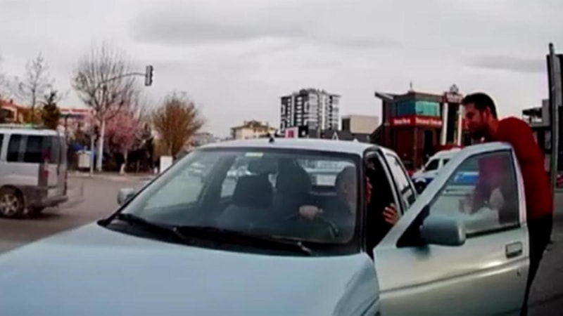 Ankara'da bir sürücünün kavşakta aracına arkadan çarpan şoförün elini öptüğü anlar araç kamerasına yansıdı.