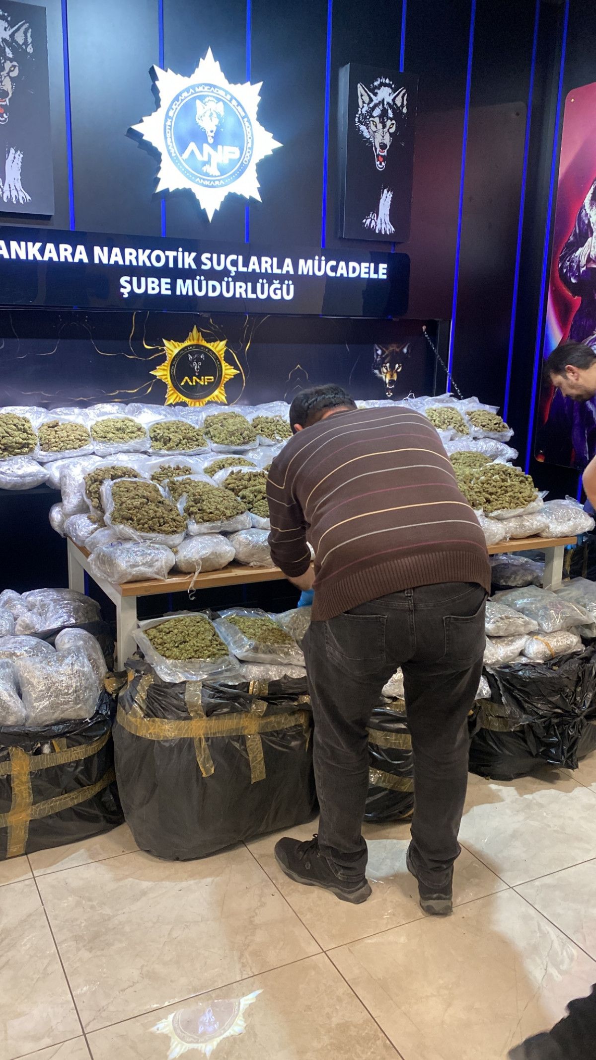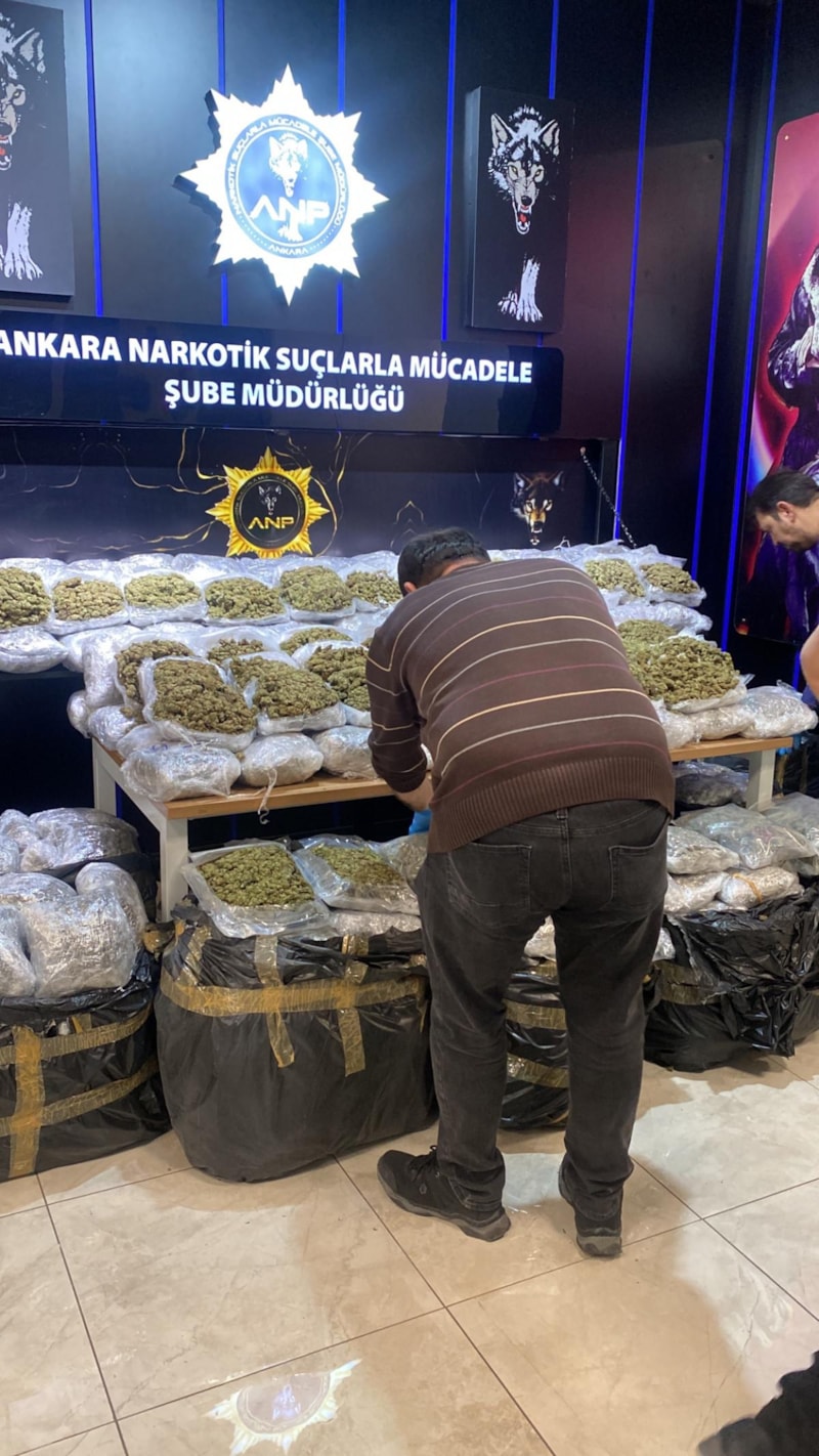 Ankara'da İl Emniyet Müdürlüğü Narkotik Suçlarla Mücadele Şube Müdürlüğü ekipleri, Gölbaşı ilçesinde un ve iplik yüklü bir tırı durdurdu.