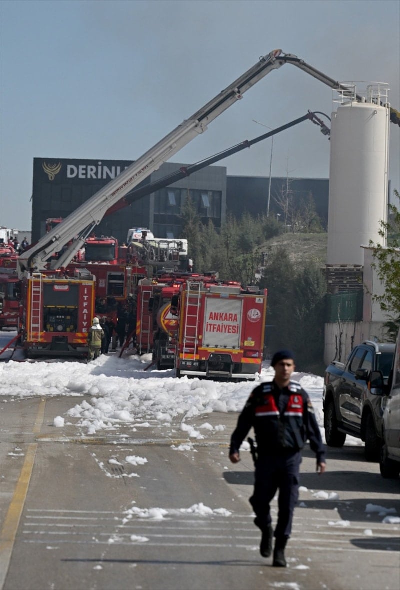 Alcı Mahallesi'ndeki Ankara Sanayi Odası Organize Sanayi Bölgesi'ndeki bir boya fabrikasında, mesainin başladığı sırada yangın çıktı.
