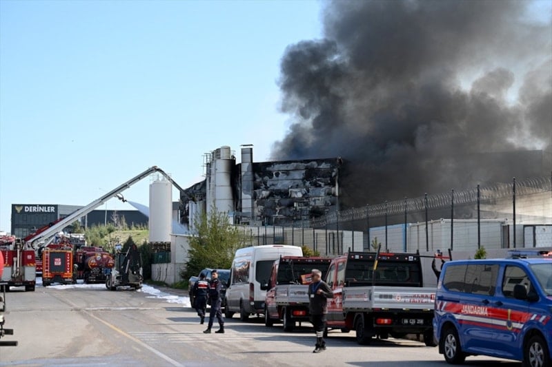 Yangın sırasında fabrikada patlamalar meydana geldi.