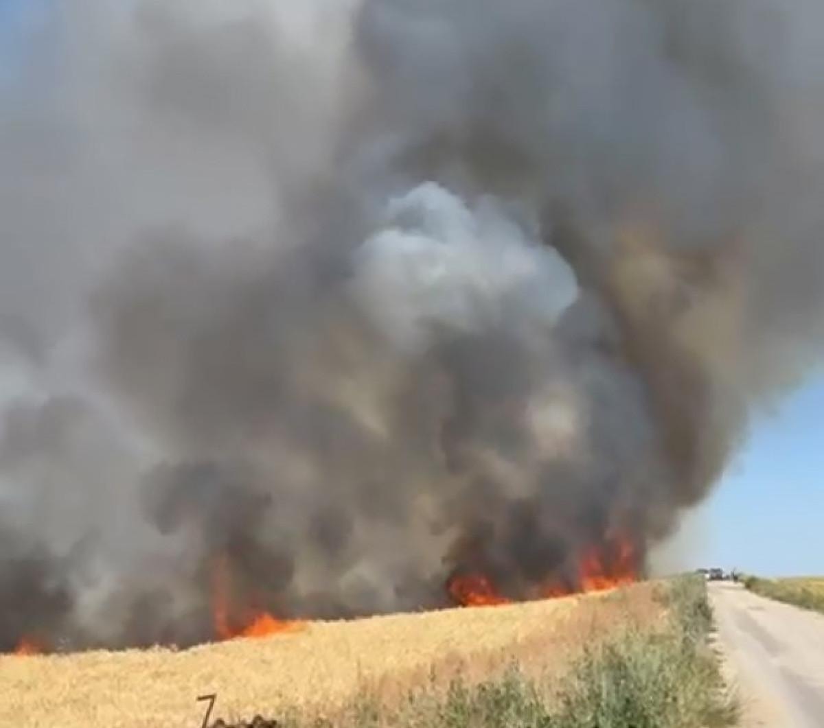 Ankara'nın Beypazarı ilçesine bağlı Kırbaşı Mahallesi'nde İsmail Ertuğrul'a ait buğday ekili tarlada, henüz belirlenemeyen nedenle sabah saatlerinde yangın çıktı.