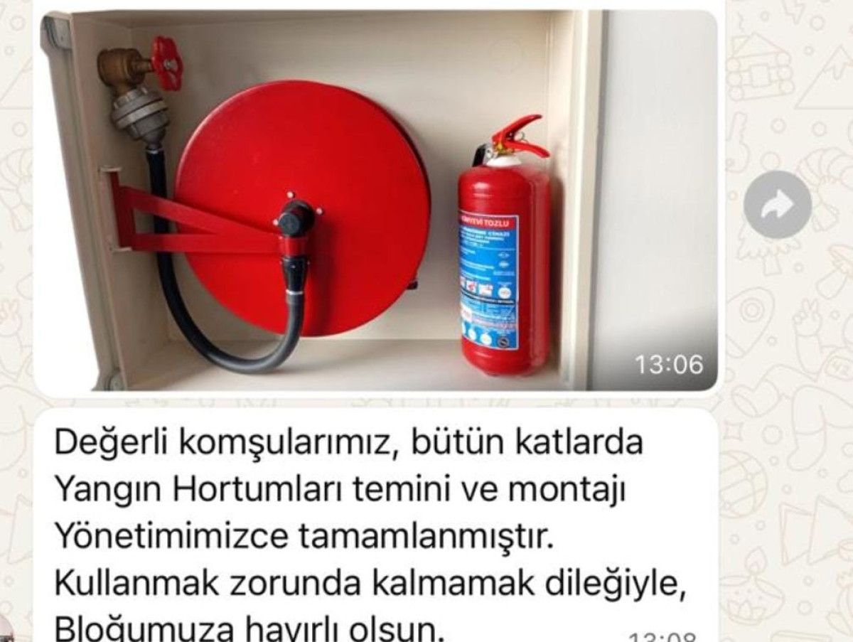 Öte yandan site yönetiminin Kartalkaya'daki otel yangınından sonra bütün katlara yangın hortumu yapılması için daire başı 8 bin TL topladığı ve yönetici F.A.'nın 3 Haziran’da, WhatsApp grubuna "Değerli komşularımız; bütün katlara yangın hortumları temini ve montajı yönetimimizce tamamlanmıştır. Kullanmak zorunda kalmamak dileğiyle, bloğumuza hayırlı olsun" mesajı attığı öğrenildi.