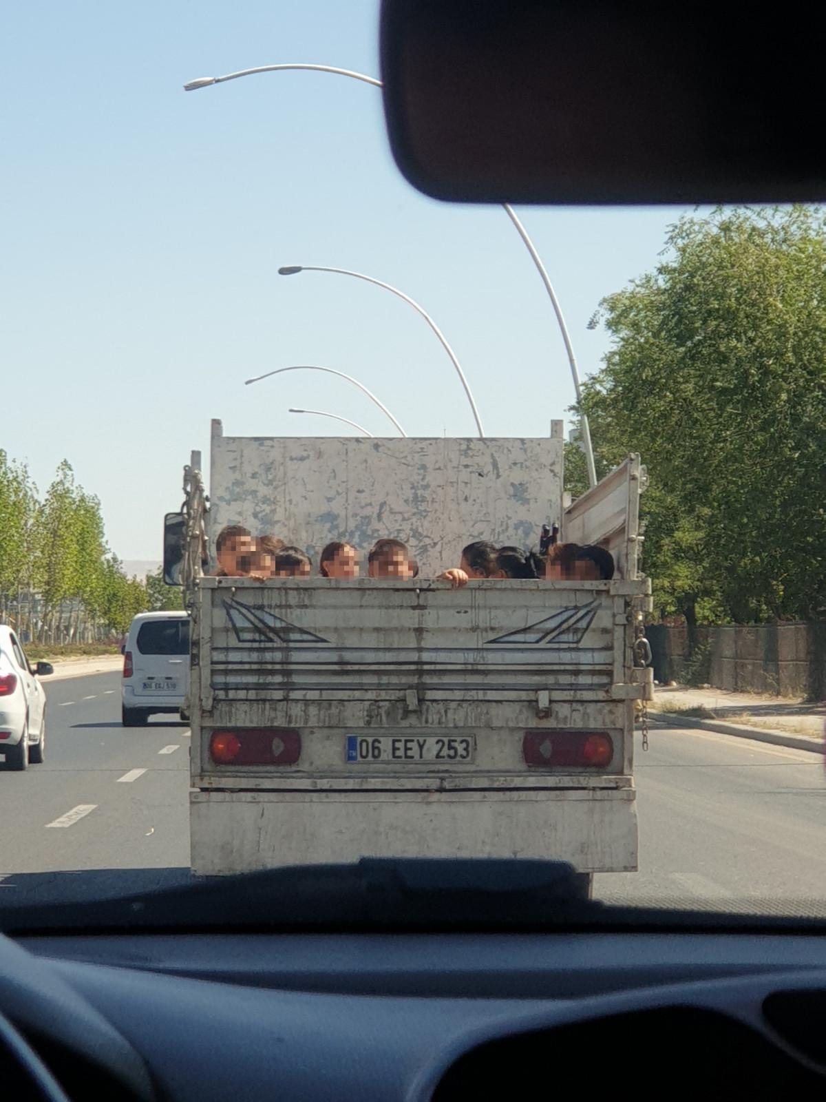 Ankara’da sürücüsü öğrenilemeyen 06 EEY 253 plakalı açık kasa kamyonet, arkasına 11 çocuğu alarak trafikte seyretmeye başladı.