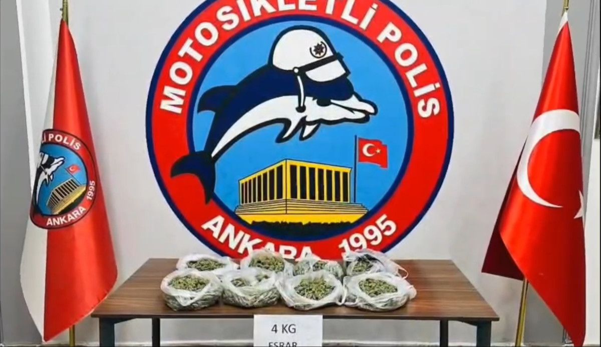 - Ankara'da durdurulan bir otomobilde 4 kilogram esrar bulundu.