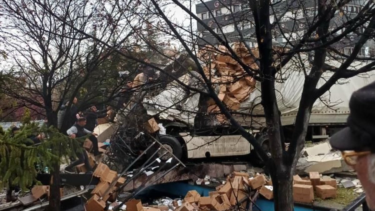 Ankara'nın Altındağ ilçesi Bostancık Caddesi'nde T.B. (55) yönetimindeki tır, yağış nedeniyle kayganlaşan yolda sürücüsünün kontrolünden çıktı.