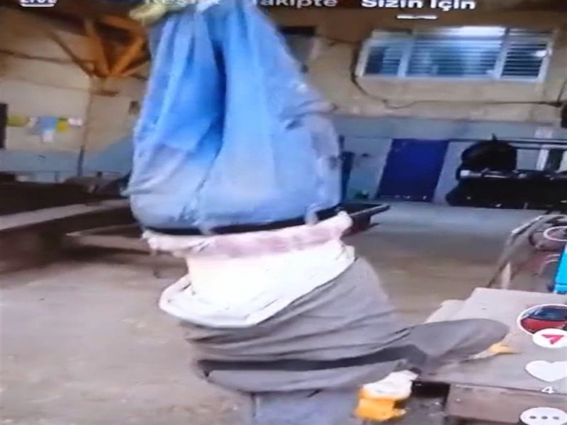 Ankara'da iş makinesi parçaları üretimi yapılan atölyede çalışan yüzde 61 zihinsel engelli Hamza S., yaklaşık 1,5 yıl önce iş arkadaşları tarafından ayağından vince bağlanıp, cep telefonu kamerasıyla kayda alındı.