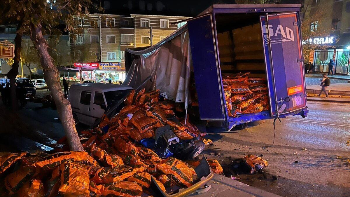 Ankara'da dün gece saat 22.30 sıralarında Ankara, Pursaklar İlçesi, Merkez Mahallesi, Şehit Salim Akgül Caddesin üzerinde, M.Ş. kontrolündeki 06 COJ 677 plakalı kömür yüklü tırın henüz bilinmeyen bir nedenden ötürü freni boşaldı.