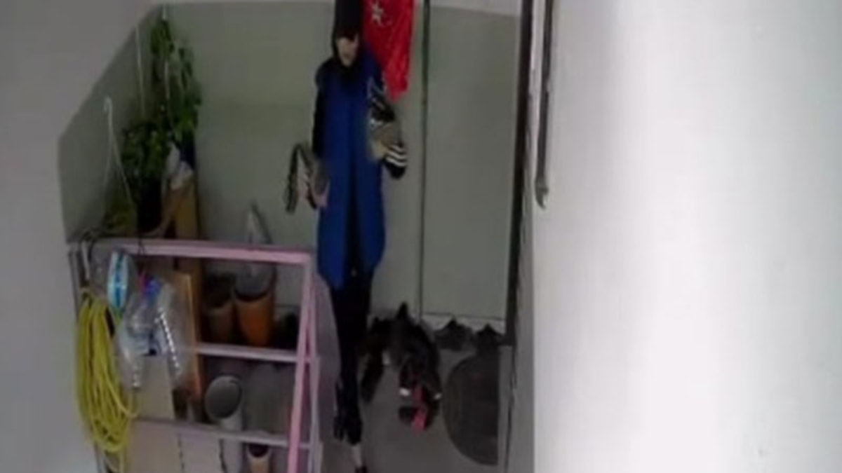 Görüntüleri izleyen apartman sakinleri, ayakkabıların binaya giren şapkalı, mavi montlu, sırt çantalı bir hırsız tarafından dolaptan alındığını gördü.