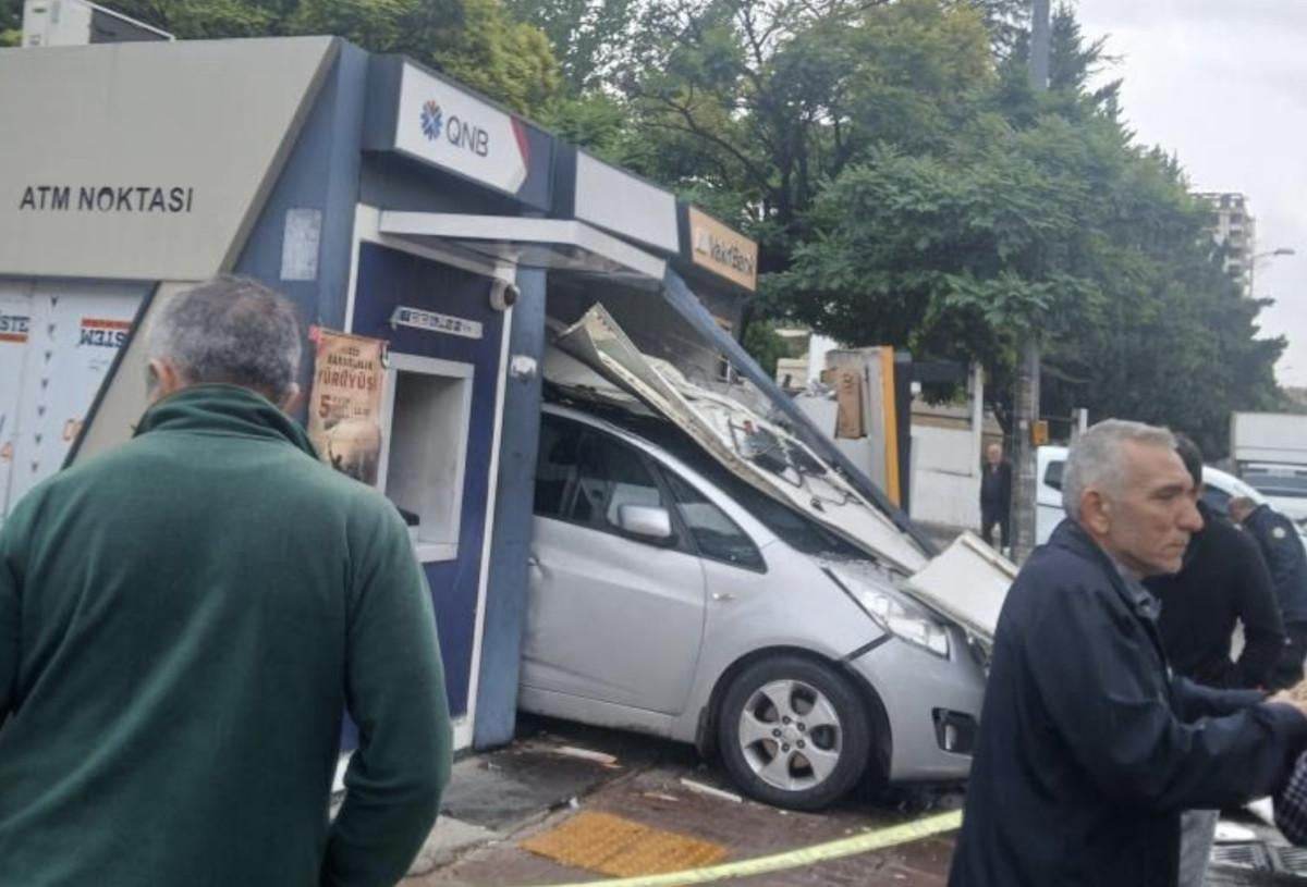 Sürücü, kontrolünü sağlayamadığı otomobil ile yol kenarındaki banka ATM'sinin içine girdi.