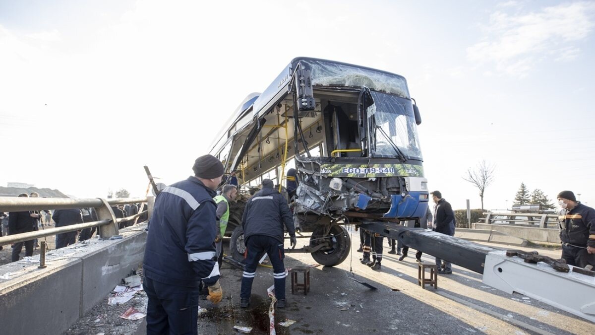 Ankara Yenikent'te Şahan Kışlası yakınlarında kontrolden çıkan 06 BU 2075 plakalı EGO otobüsü, kontrolden çıkarak köprü korkuluklarına çarptı.