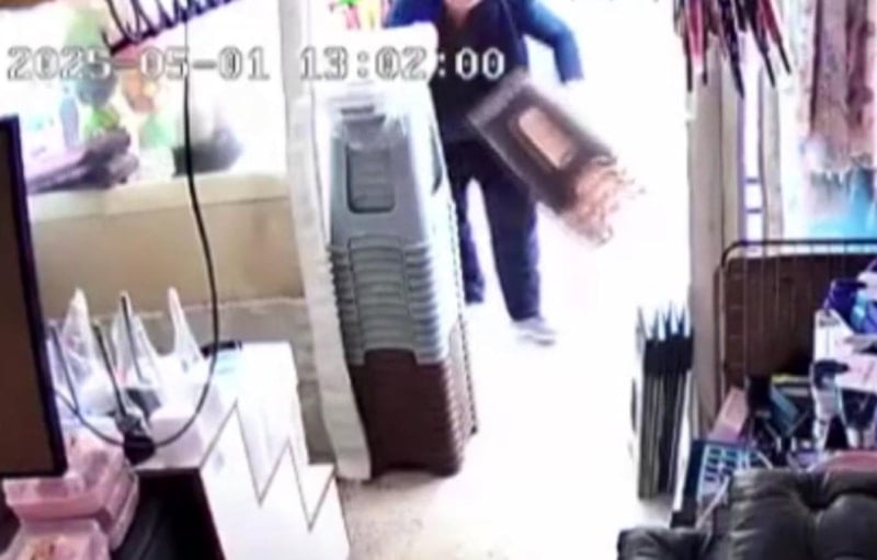 Ankara'da bir dükkanın önüne gelen şahsın, rahat tavırlarla ürünleri toplayıp götürdüğü anlar görüntülendi.