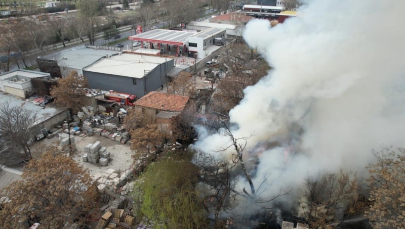 Ankara'nın Altındağ ilçesinde, hurda kağıt ve kartonların bulunduğu alanda yangın çıktı.