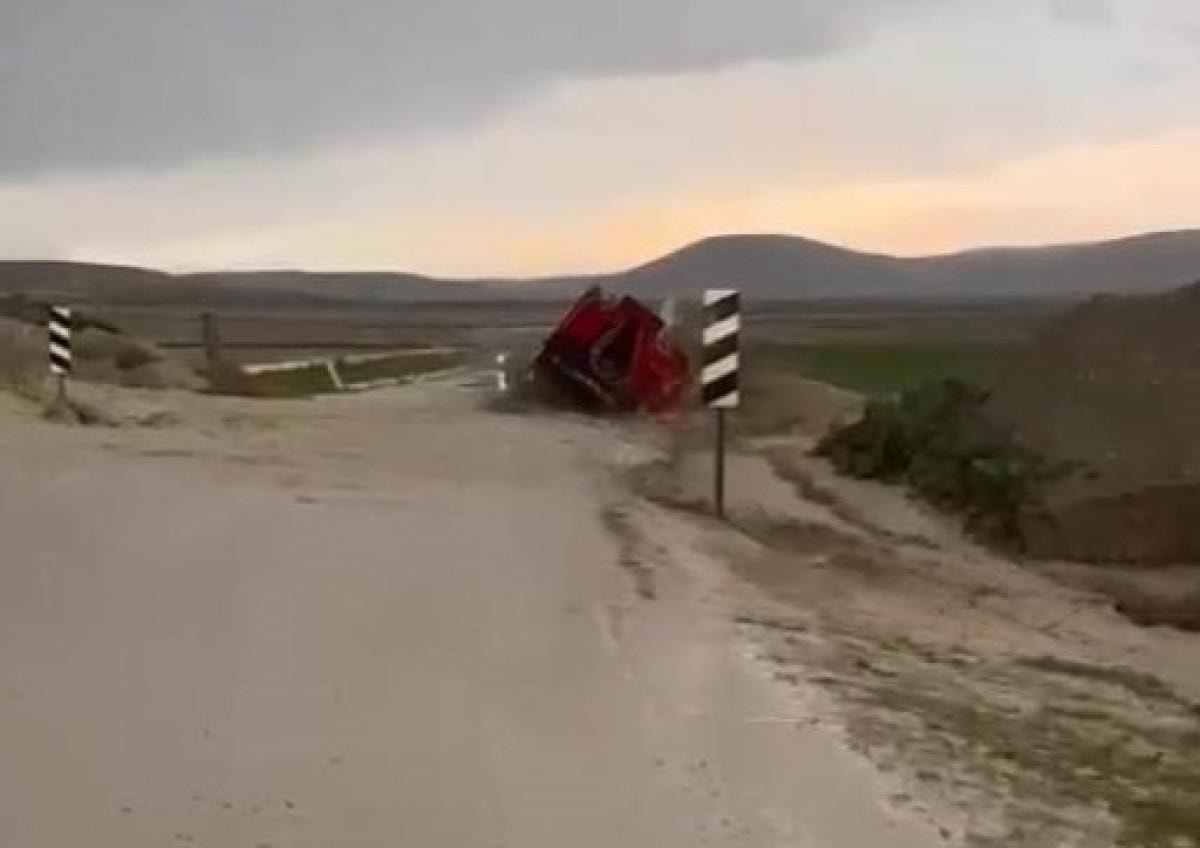 İTFAİYE ARACI, SEL SUYUNA KAPILDI