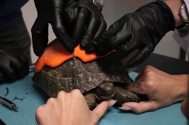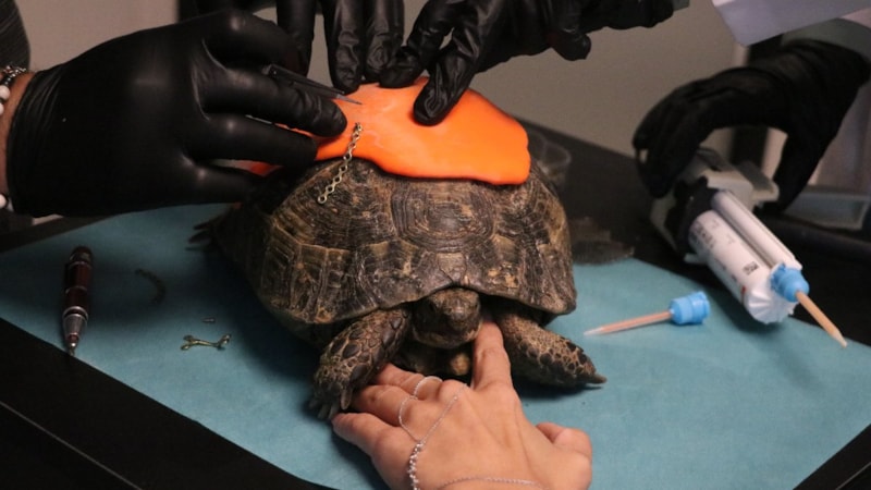 Gölbaşı ilçesinde, yol kenarında kabuğu kırılmış halde bulunan kara kaplumbağası 'Roka'ya 3 boyutlu protez takıldı.
