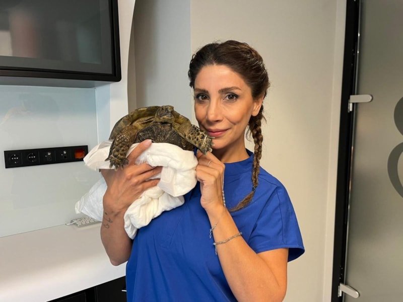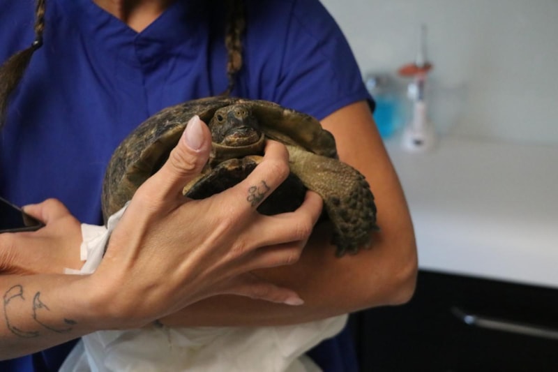 Yeşilyurt, yaralı kaplumbağayı veteriner kliniğine götürdü.