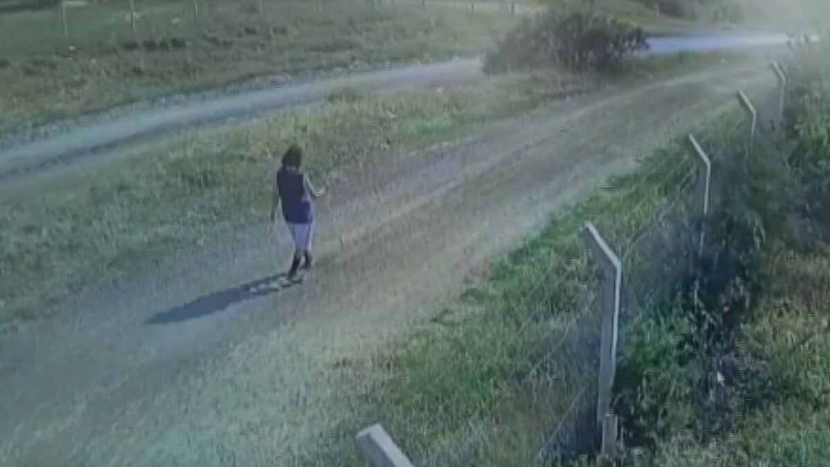 Çalseki yakınlarında bulunan bir evin güvenlik kamerasına yansıyan görüntülerde Eker'in elinde bir sopa ile yolda yürüdüğü kaydedildi.