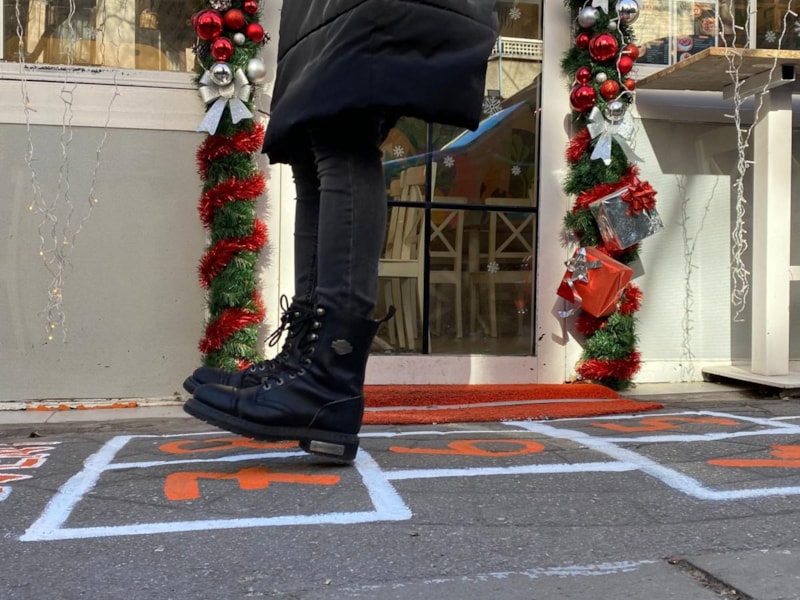 Tatlı dükkanı işleten Levent Çelik, iş yerinin önünde kaldırıma kızının oynaması için çizdiği seksek oyunu ile birçok kişiyi çocukluğuna götürdü.
