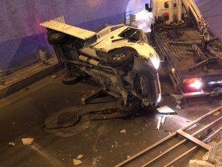 Bariyerleri aşan kamyonet, yaklaşık 4 metre yükseklikten tünel girişine uçtu. Kazanın etkisiyle yan yatan kamyonetin sürücüsü Daşkıran ile yanında bulunan yolcu Mustafa Anıl Özata kazada yaralandı.