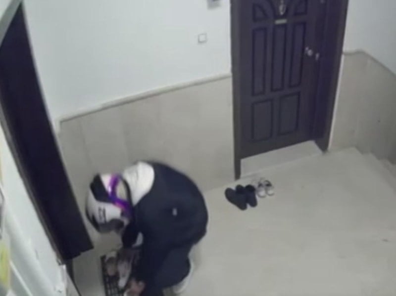 Sincan ilçesinde bir kuryenin sipariş için geldiği apartmandaki bir dairenin önündeki ayakkabı çaldığı anlar güvenlik kamerasına yansıdı. Ayakkabısı çalınan çocuğun babası ise, "Derdimiz çalınan ayakkabı değil, bu olaylar tekrarlanmasın" dedi.