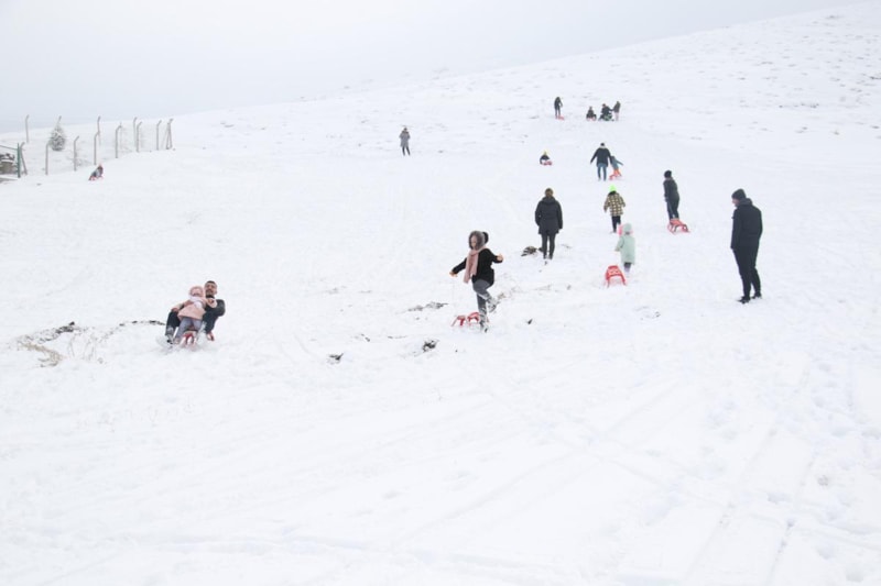 Kar yağışı ile birlikte Ankara'nın yanı başındaki Elmadağ Kayak Merkezi'nde yoğunluk yaşandı. Ellerine kızaklarını alan çocukların yanı sıra her yaştan Ankaralı doyasıya eğlendi.