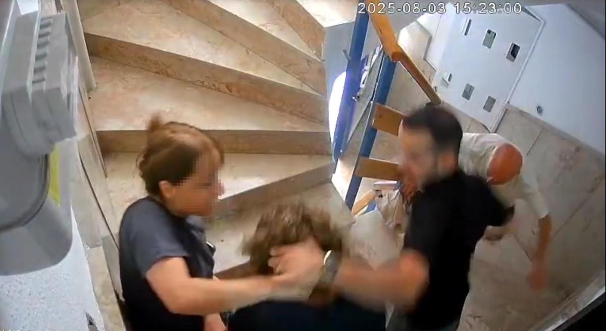 N.S., Nihal Aras'ı eve gireceği sırada saçından tutup dışarıya çıkarırken oğlu S.S. de yumruk attı.