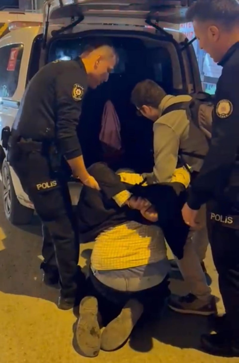 Polis aracına binmemek için uzun süre direnen saldırganın, olaydan önce kendisine de fiziki zarar verdiği öğrenildi.