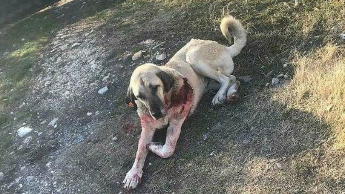 Köpeklerden biri sırtına gelen bıçak darbeleriyle yaralanırken, yavruları başından ayrılmadı. Olay anı, bir vatandaşın cep telefonu kamerasına yansıdı.4 saat ameliyat edildi