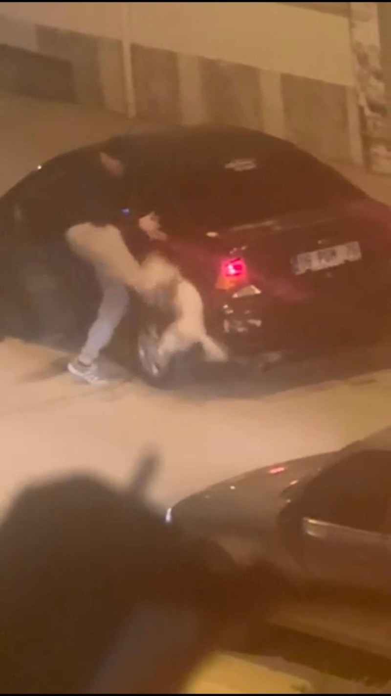 Ayaz, kız arkadaşı ve köpeğini darbettikten sonra araca binerek uzaklaştı. Bu sırada H.N.K., yere düşerek başını kaldırıma çarptı.