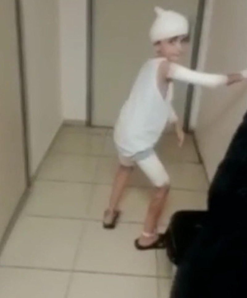 Videoda, vücudunun bazı noktalarının sarılı olduğu görülen küçük çocuğun yürümekte zorlandığı görüldü.