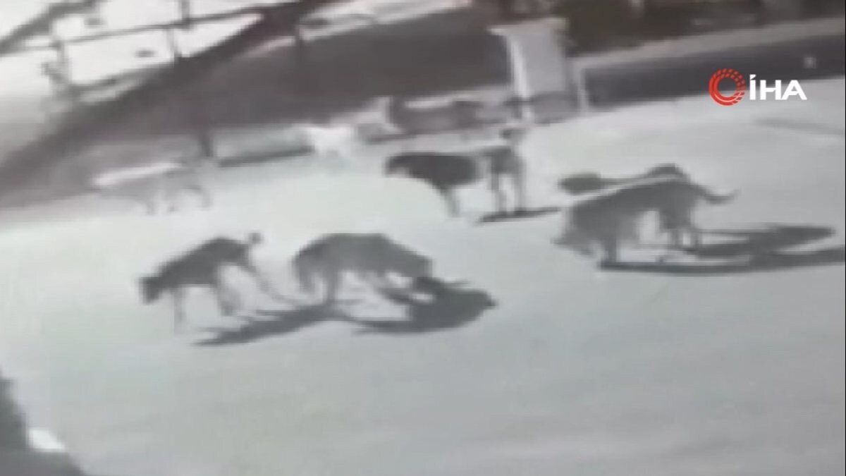 Güvenlik kamerasına yansıyan görüntülerde, köpeklerin saldırısına uğrayan kedi feci şekilde öldü.