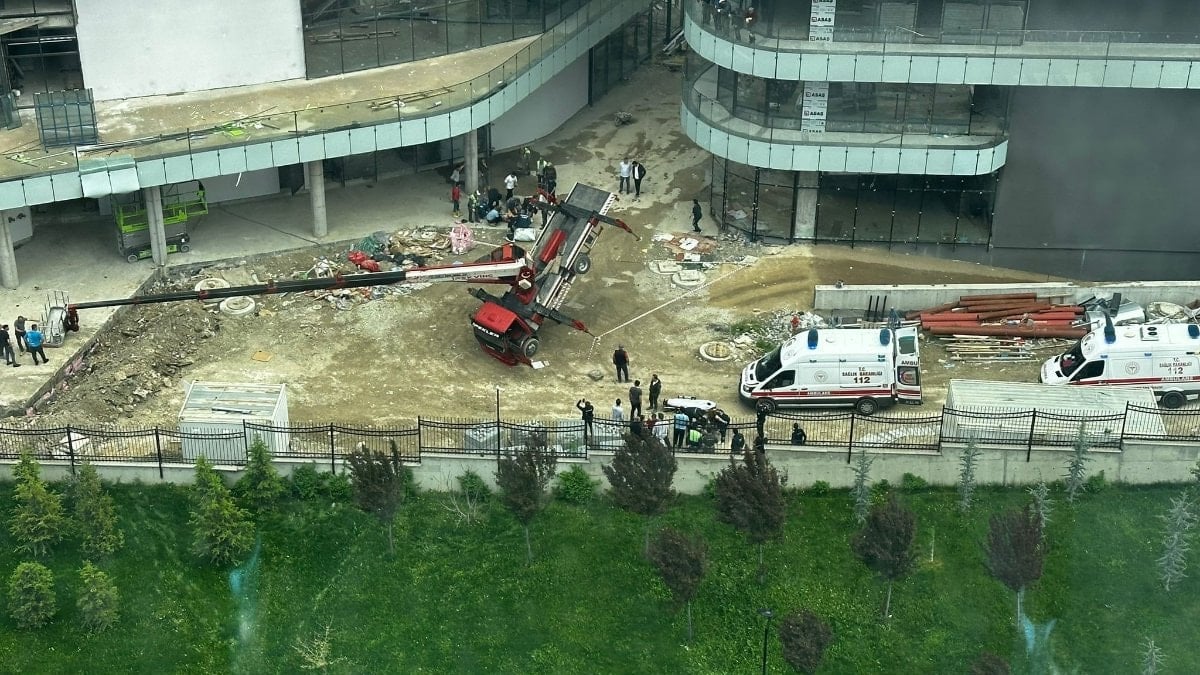 Çankaya'daki TOGO Kulelerinin yer aldığı inşaat sahasında, taşeron firmaya ait kule vinci devrildi.