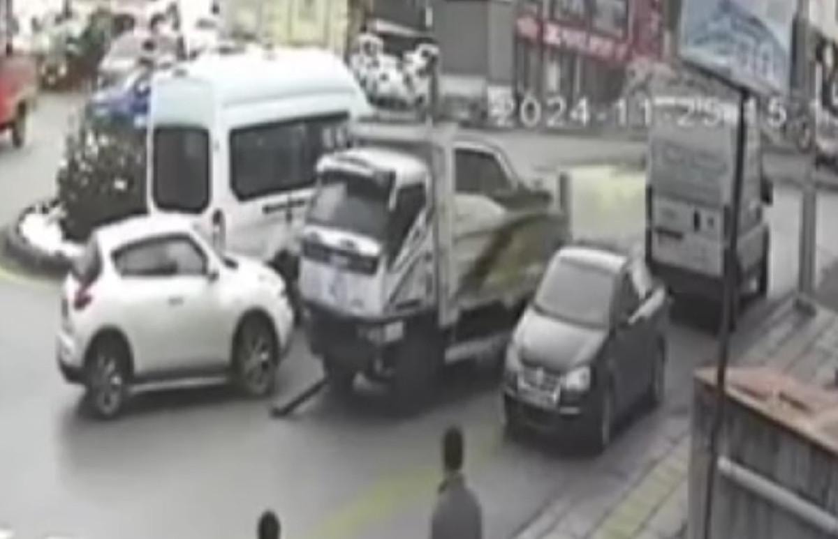 Öte yandan, kamyonetin karşı şeride geçip araçlara çarptığı anlar güvenlik kameraları tarafından kaydedildi.