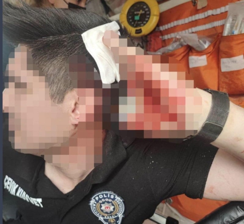Yaralı polisler, ambulansta yapılan müdahaleden sonra hastaneye götürüldü.