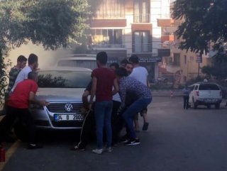 Mahalleli el birliği ile yangından otomobil kaçırdı VİDEO