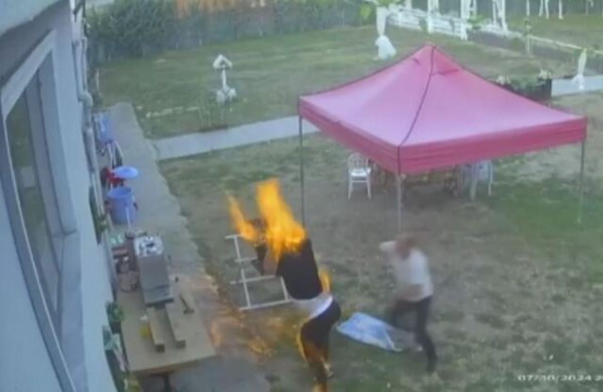 Yapıcı ile yanındaki kişinin yakmak istedikleri mangal bir anda parladı.