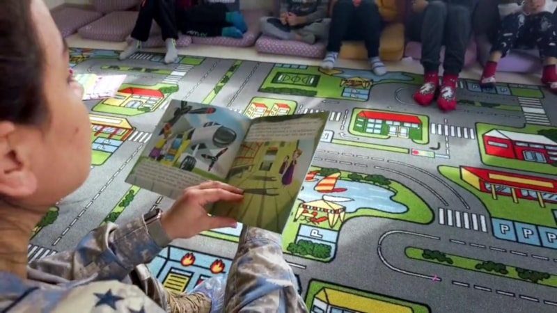 Asker ağabey/ablaları, çocuklara kitap okudu.