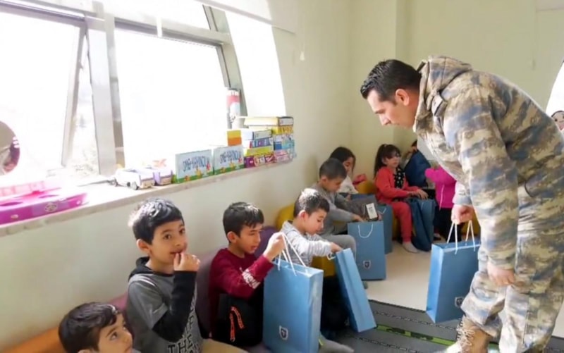Çocuklar, kendilerine hediyeler getiren komutanlar ile oyunlar oynayıp, vakit geçirdi.