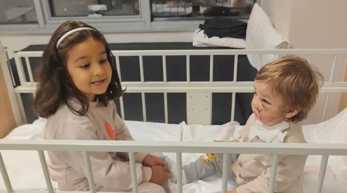 Yüzünden yaralanan Efe ve göğsünden yaralanan Doğa, hastaneye kaldırıldı.