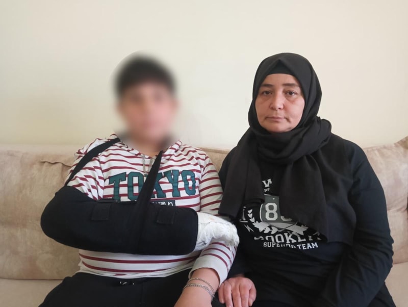 Olay günü müdür yardımcısı beni aradı ve oğlumu almam gerektiğini söyledi. Ardından da ders gireceğini ve çocuğumu, nöbetçi öğrencilerden teslim alabileceğimi belirtti. Oğlumun elinde buz vardı ve parmağı çok kötü haldeydi. Hastaneye götürdüm ve parmak kemiğinin kırıldığını, dokularının da koptuğunu öğrendik. Karşı tarafın da çocuk olduğunu düşündüğüm için şikayetçi olmak istemedim. Ertesi gün avukatımızla birlikte okula gittik. Belki benim de çocuğumda suç vardır diye kamera kayıtlarını izlemek istedim. Okulda hiçbir muhatap bulamadım. Sınıf öğretmeni, okul müdürüyle görüşmemi söyledi. Müdür yardımcısının odasına gittik. Bizimle ilgilenmedi. Telefonda görüştüğü kişiye argolu sözler söylüyordu. Avukatım vekaletnamesini göstermek istemeyince bizi odasından kovdu. Dışarı çıkmamızı isteyerek bize bağırdı. Bize kameranın bozuk olabileceğini, oğlumun o çocuğa iftira atabilmiş olacağına dair söylemlerde bulundu.