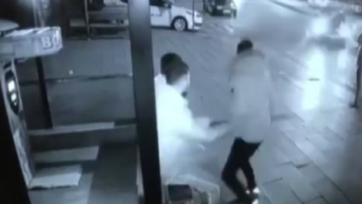Öte yandan kaza anı, iş yerinin güvenlik kamerasına yansıdı.