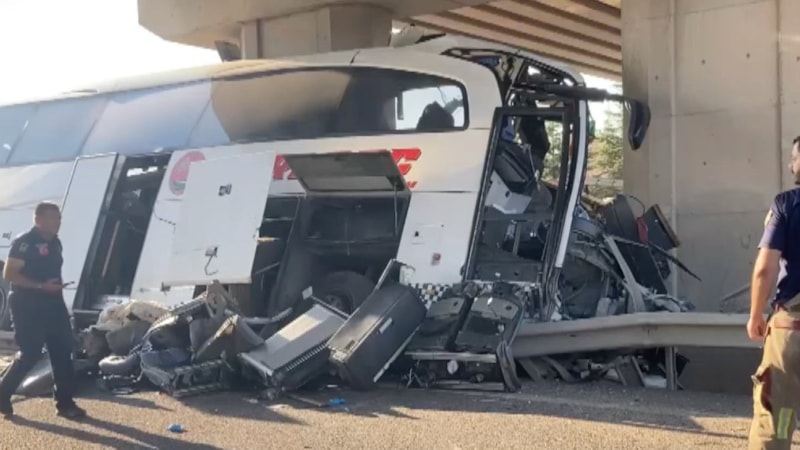 Ankara'da yolcu otobüsünün köprünün ayağına saplanması sonucu meydana gelen trafik kazasında 9 ölü ve 26 yaralının olduğu bildirildi.