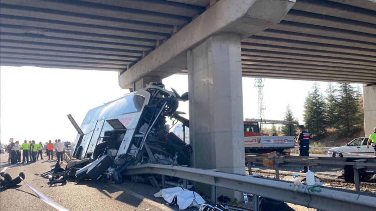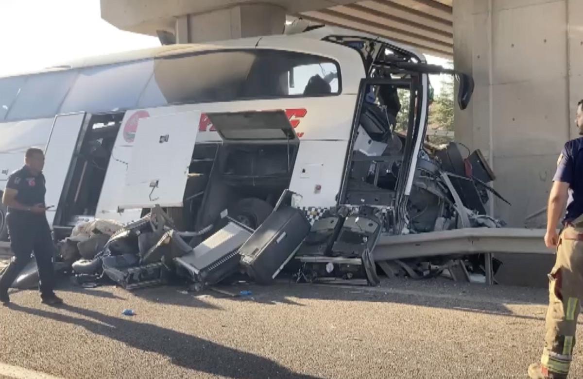 Polatlı ilçesindeki kaza, sabahın erken saatlerinde saat 05.00 sıralarında Eskişehir yönüne giden otobüsün köprünün ayağına saplanması sonucu meydana geldi.