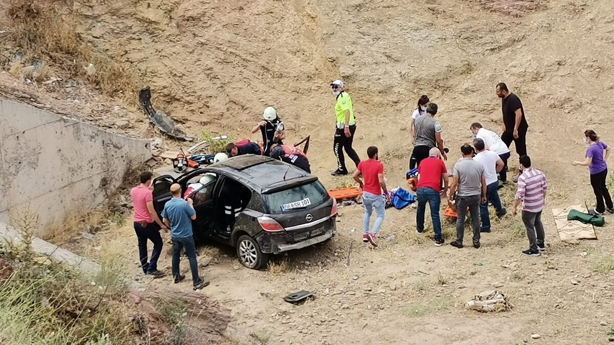 Otomobilin hurdaya döndüğü kazada, sürücü Bakır D., annesi, kimliği belirlenemeyen 2 kadın ile 1 çocuk yaralandı.