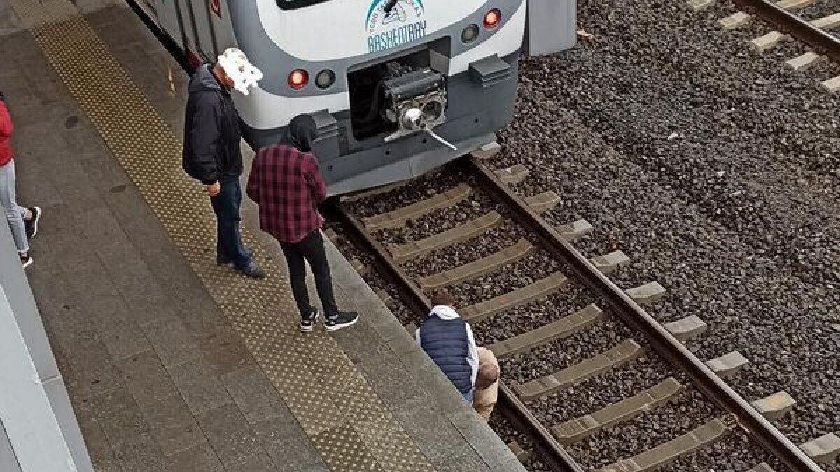 Ardından düşen kişinin yukarıya alınmasıyla tren seferine devam etti.