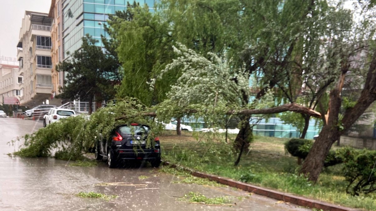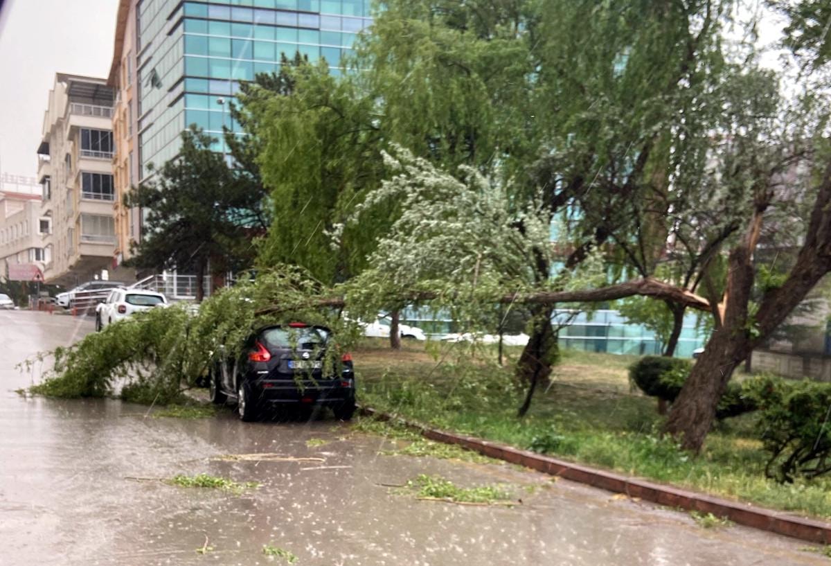 Etimesgut ilçesine bağlı Devlet Mahallesi'nde bulunan Recep Tarman Parkı'nda bir ağacın dalı gövdesinden kırılarak park halindeki otomobilin üzerine düştü.