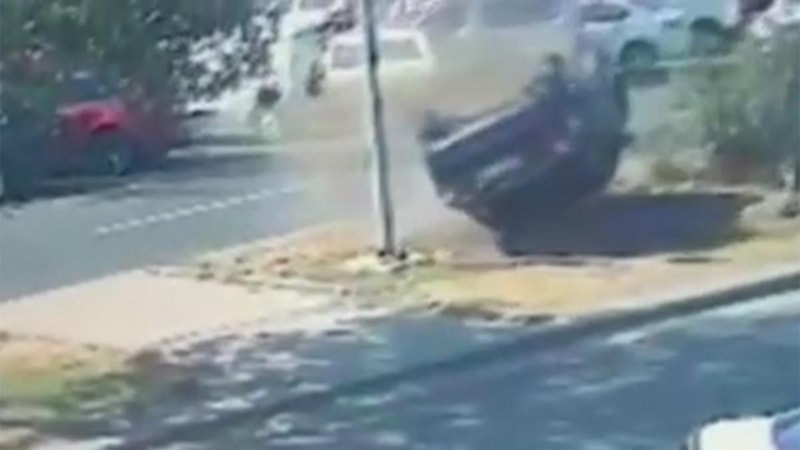 Ankara'da sürücüsünün kontrolünü kaybettiği otomobilin savrularak refüje devrildiği anlar güvenlik kamerasına yansıdı.