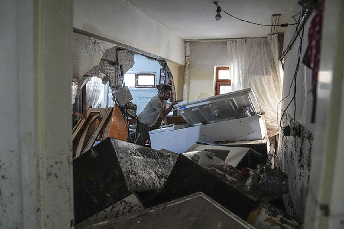 1071. Sokak’taki Yiğit Apartmanı’nda oturan Wadullah Nasır, sağanak şiddetlendikten sonra camının patladığını, evin içine su dolduğunu anlattı. Çocuklarını alarak dışarı çıktığını söyleyen Nasır, “Daire tamamen suyla doldu. Evimizin duvarı yıkıldı, buzdolabı da dahil her şey zarar gördü. Yağmur her şeyi mahvetti.” dedi. Yakınlarının düğün hazırlığı yaptığını ve çocuklarının kıyafetlerini almak istediğini anlatan Nasır, “Çocuklar ‘Düğüne gideriz’ dedi ama ‘Önce canımızı kurtaralım’ diyerek onları dışarı çıkardım.” diye konuştu.