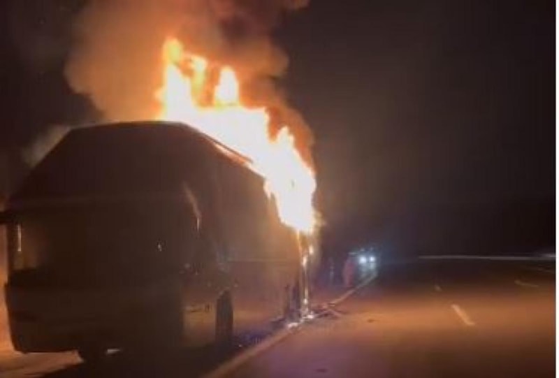 Çıkan yangın sonucunda yolcu otobüsü kullanılamaz hale geldi.